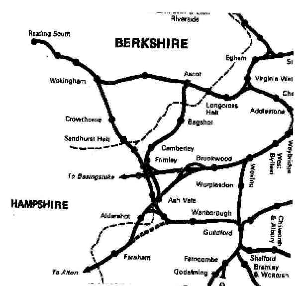 Camp. Oddly enough the Reading to Guildford line does not go through Aldershot, just passing